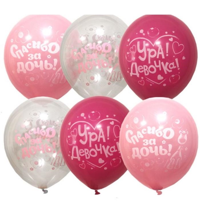 5231387 Шарик 2-сторонний "Ура! Девочка!" D 30 см. (с гелием)
