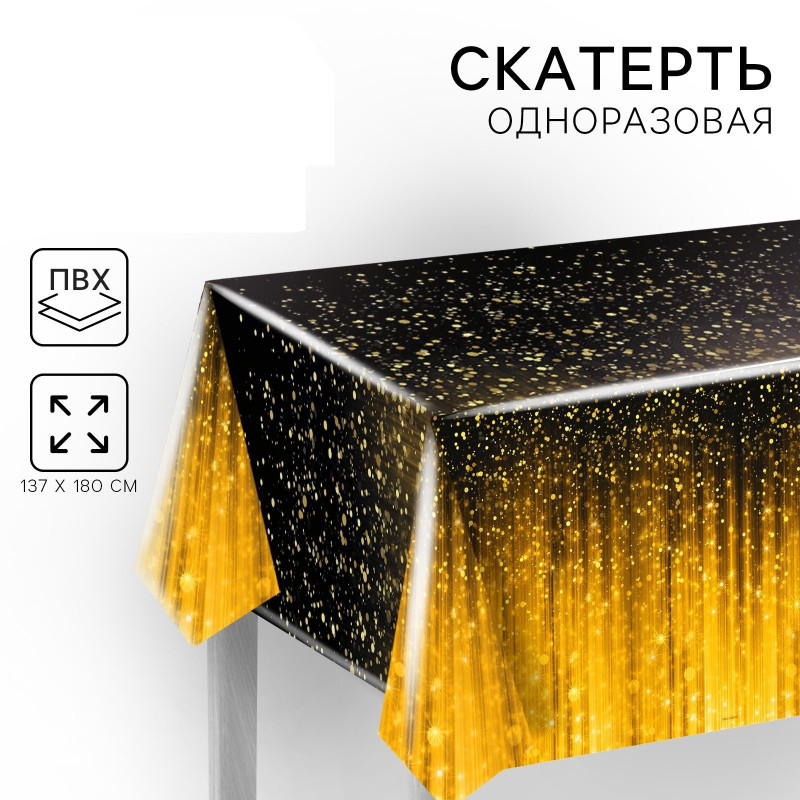 10340819 Скатерть Черная с золотом. Размер 137 х 180 см.