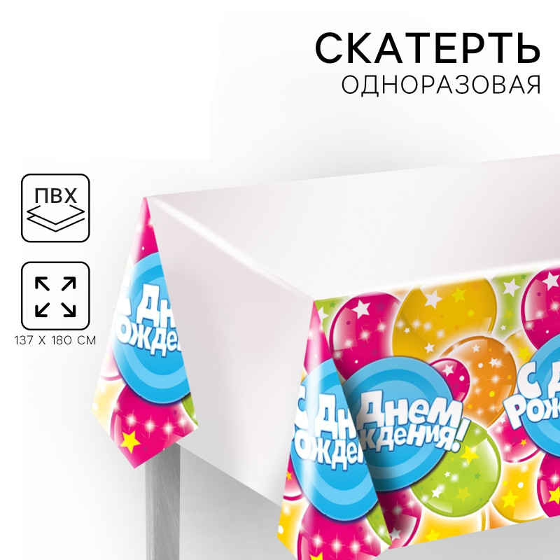 1048650 Скатерть "С Днем рождения! Шары и звезды" Размер 130 * 180 см.