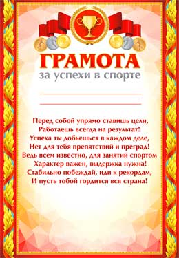 0-480 Грамота с текстом "За успехи в спорте".Формат А4
