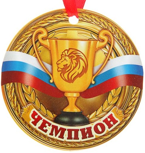 2314897 Медаль магнит "Чемпион" на ленте.Диаметр 7 см.