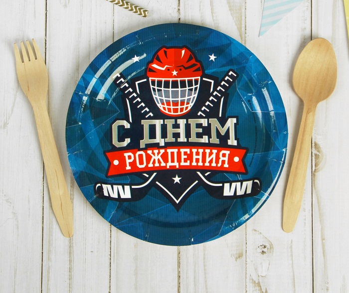 3421679 Набор тарелок "С Днем рождения! Хоккей" (10 шт.) Диаметр 18 см.