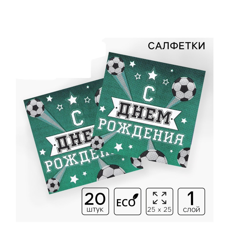 3536835 Набор зеленых салфеток "С Днем рождения! Футбол" (20 шт.) Размер 25 х 25 см.