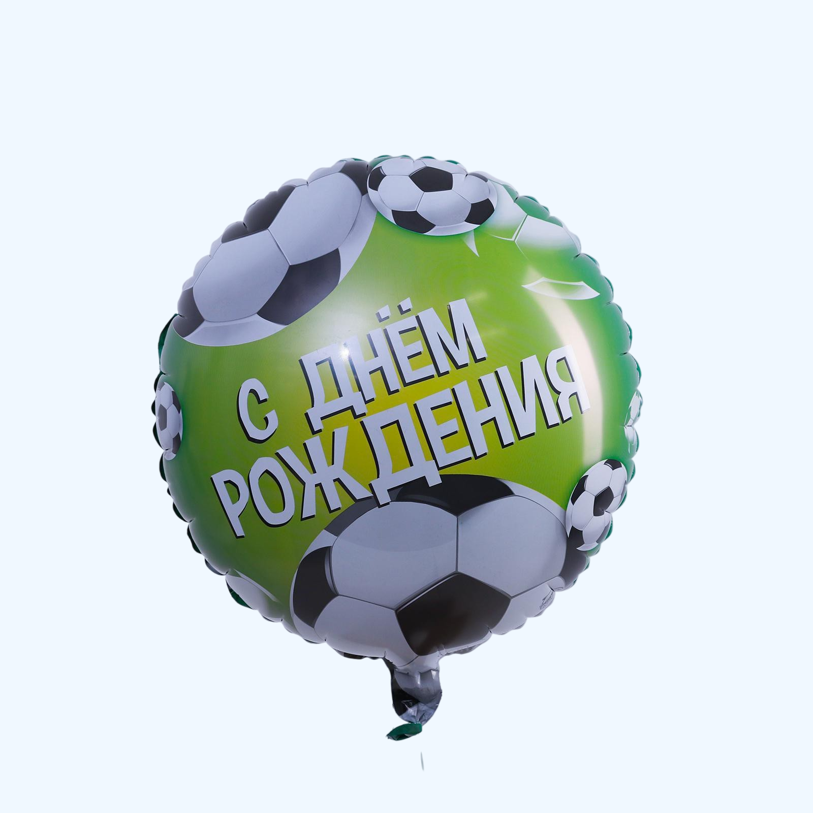4995890 Зеленый фольгированный круг "С Днем рождения! Футбол" D 45 см.