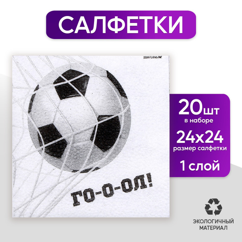 9684256 Набор белых салфеток "Футбол" (20 шт.) Размер 24 х 24 см.