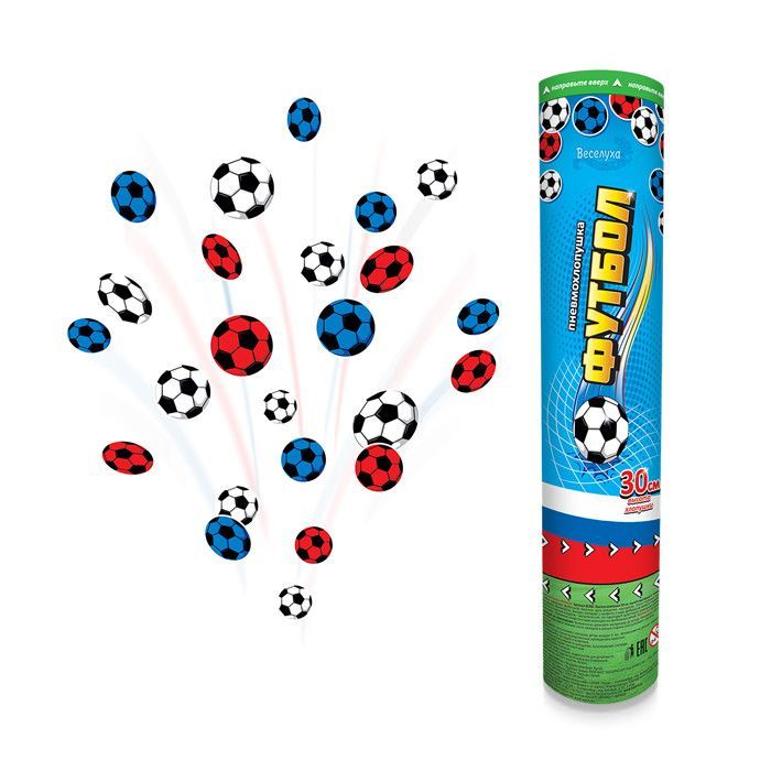 БР 8230-Z Хлопушка поворотная "Футбол" Высота 30 см.Наполнение конфетти разноцветные футбол