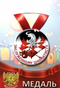 ФГ ZMET00176 Медаль металл "Заслуженному шахматисту" на атласной ленте