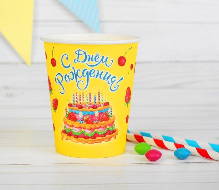 1227845 Набор стаканов "С Днем рождения! Торт с клубникой" (10 шт.)