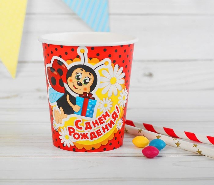 2370453 Набор красных стаканов "С Днем рождения! Божья коровка" (10 шт.)