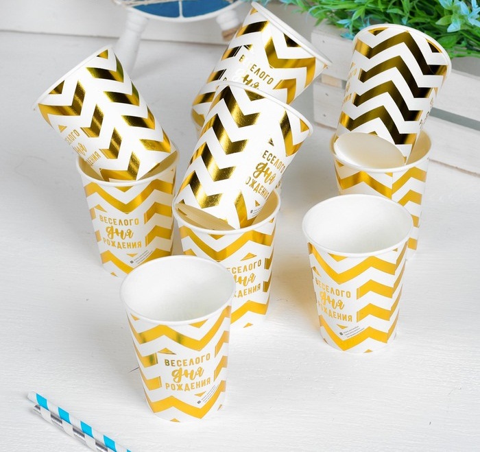 3894956 Набор золотых стаканов "Веселого дня рождения!" (10 шт.)