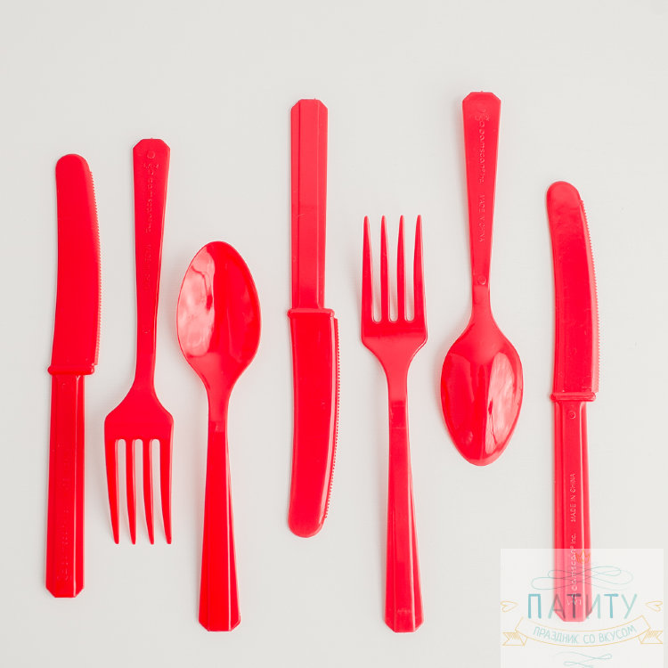 ВЗ 1502-1079 Красный пластмассовый набор: 8 ложек, 8 вилок, 8 ножей