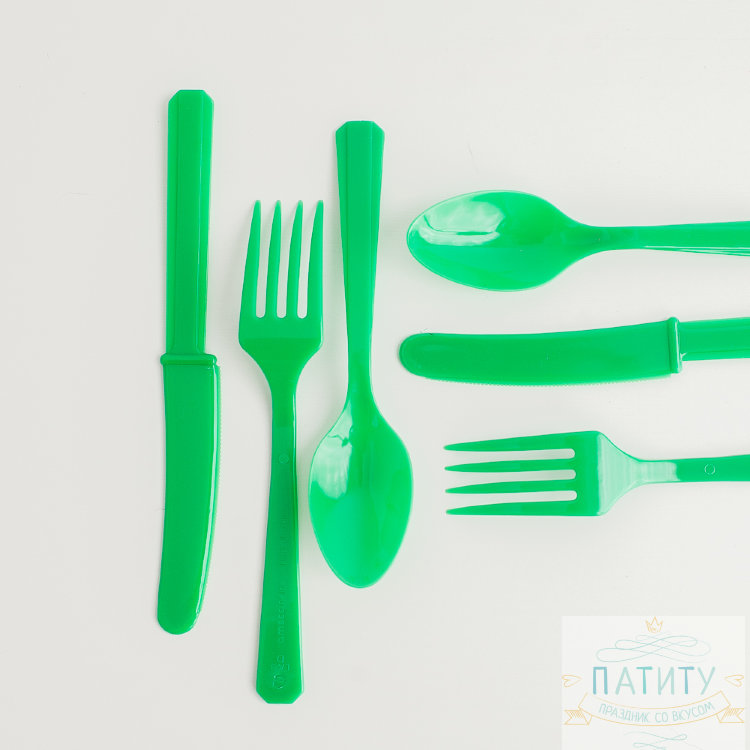 ВЗ 1502-1082 Зеленый пластмассовый набор: 8 ложек, 8 вилок, 8 ножей