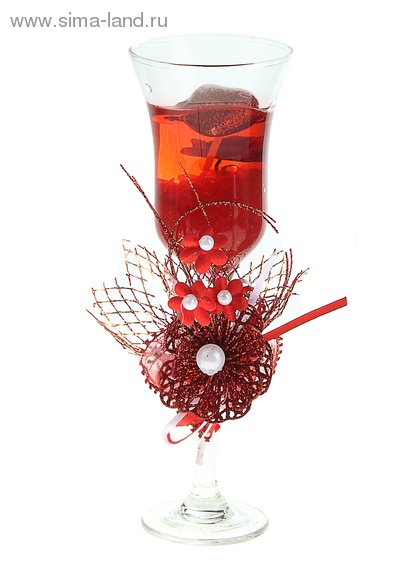 102130 Свеча в фужере "Красный бант+бусинка" гелевая