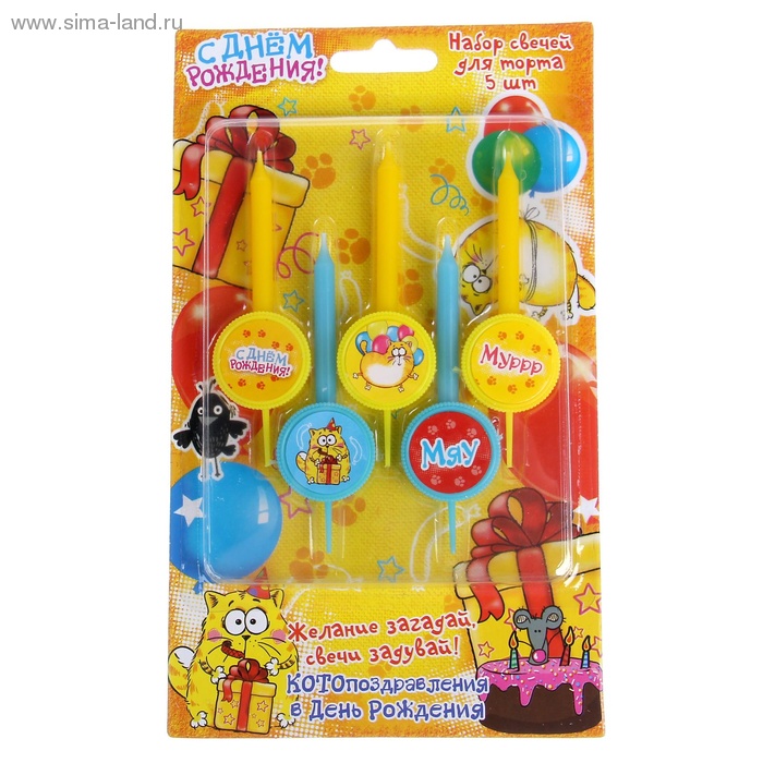 1032274 Набор свечей "С Днем рождения! Котэ" 5 шт.