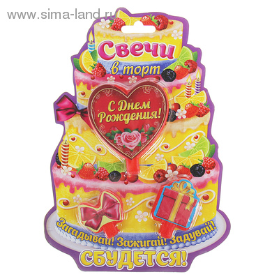 130987 Свеча "С Днем рождения.Сердце" с метализированной наклейкой + 2 свечи
