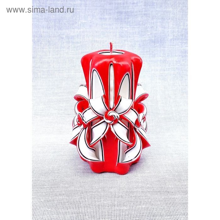 1524294 Свеча резная "Цветок красно-белый" Высота 10-11 см.