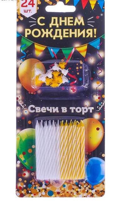 2323274 Набор свечей в торт "Желтые/белые" ( 24 шт.) с подставками (12 шт.)