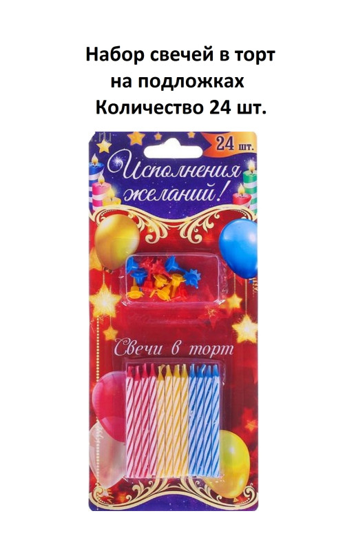 2323278 Набор свечей в торт "Исполнения желания" ( 24 свечей, 12 подставок)