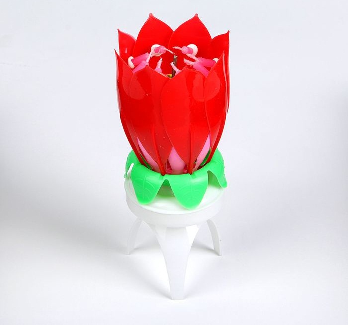 2385922 Свеча музыкальная "Красный тюльпан" Высота 12 см. Не вращается
