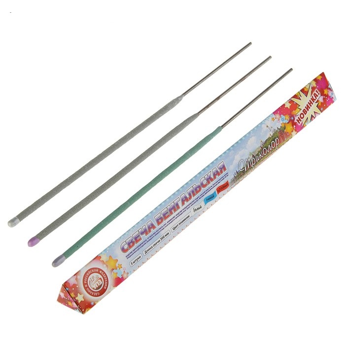 2910530 Набор цветных бенгальских огней "Триколор" (3 штук) Длина 30 см.