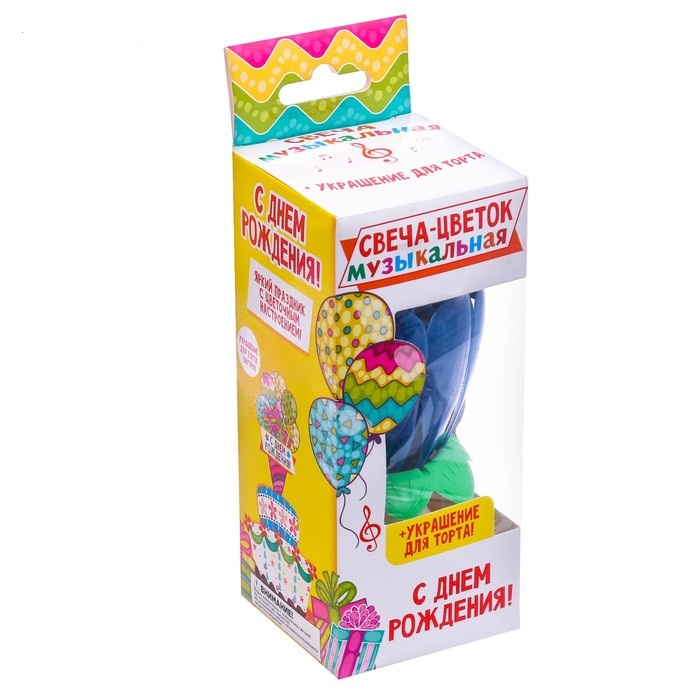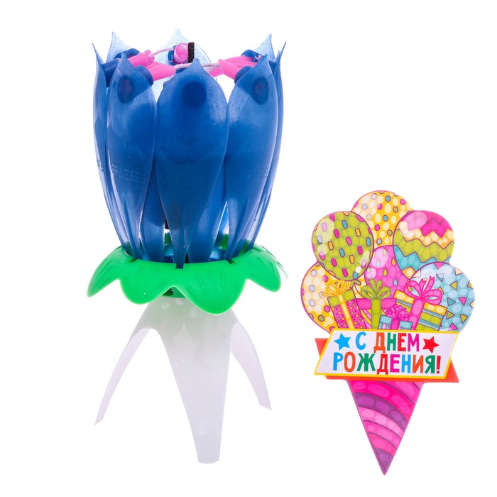 3021060 Музыкальная свеча "Синий тюльпан" + топпер. Высота 14 см. Не вращается