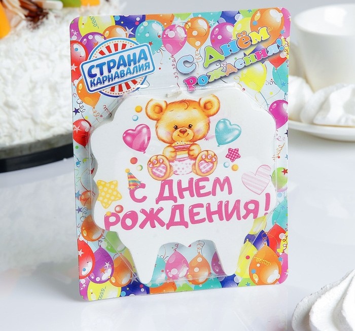 3424807 Свеча в торт "С Днем рождения! Мишка с подарками"