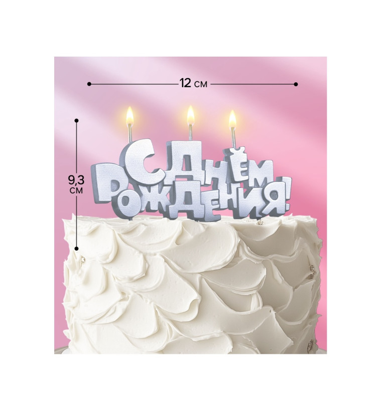 9380767 (1956) Набор буквенных свечей "С Днем рождения!" Размер 12 х 9 см. Цвет серебро