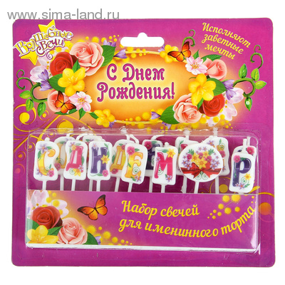 962990 Набор буквенных свечей "С Днем рождения.Цветы".В наборе 14 шт.