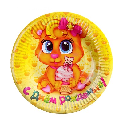 1030656 Набор тарелок "С Днем рождения.Мишка с бантиком". Диаметр 18 см. (6 шт.)