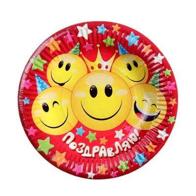 1030684 Набор тарелок "Поздравляю! Смайлики и звезды" (6 шт.) Диаметр 18 см.