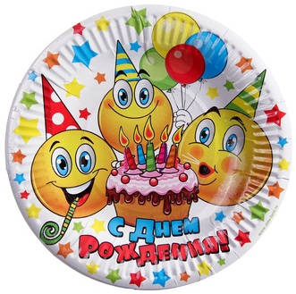 1030685 Набор тарелок "С Днем рождения! Смайлы и тортик" (6 шт.) Диаметр 18 см.