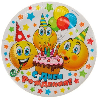 1030695 Набор тарелок "С Днем рождения! Смайлики,торт" (6 шт.) Диаметр 23 см.