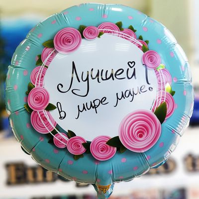 ВЗ 1202-2742 Фольгированный круг "Лучшей в мире маме!" Размер 46 см.