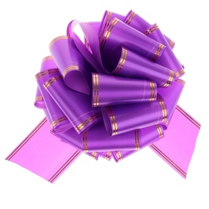 141348 Фиолетовый большой бант с золотой полосой для упаковки. Ширина 10 см.