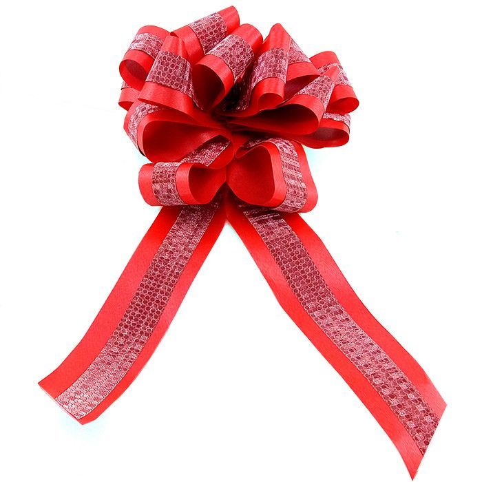 БР 1705052 Красный бант- шар с серебряной полосой для упаковки. Ширина 4,5 см. Диаметр 16 см.