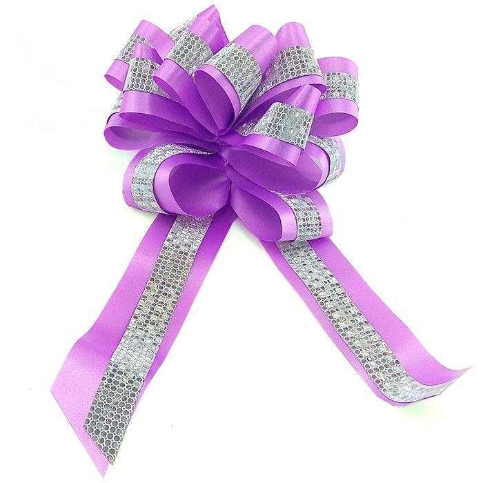 БР 1705056 Сиреневый бант- шар с серебряной полосой для упаковки.Ширина 4,5 см. Диаметр 16 см.