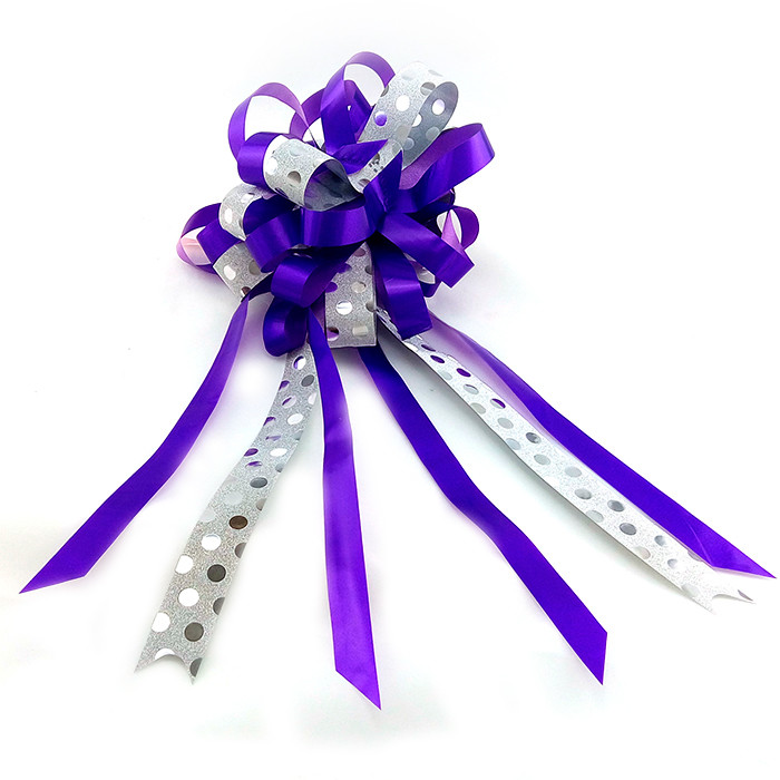 БР 1705070 Фиолетовый бант- шар с серебром в горох для упаковки. Ширина 7 см. Диаметр 24,5 см.