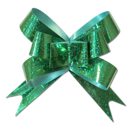 КП 423 Зеленая голограмма бант для упаковки. Ширина 2,2 см.