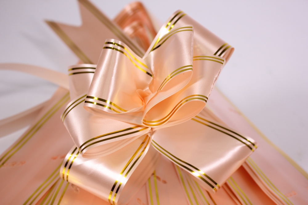 КП 925 Персиковый бант с золотой полосой для упаковки. Ширина 2,2 см.