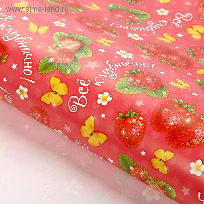 114400 Бумага упаковочная "Все клубнично!" Размер 70*100 см. Глянцевая
