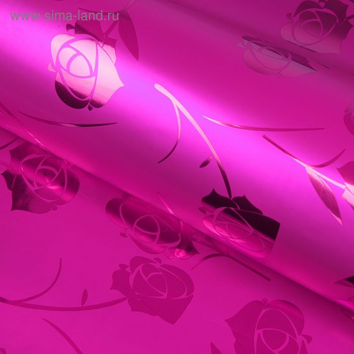 1212033 Бумага голографическая "Цветы на малиновом" Размер 70*100 см.