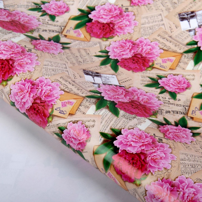 858725 Бумага упаковочная " Пионы" Размер 70*100 см. Глянцевая