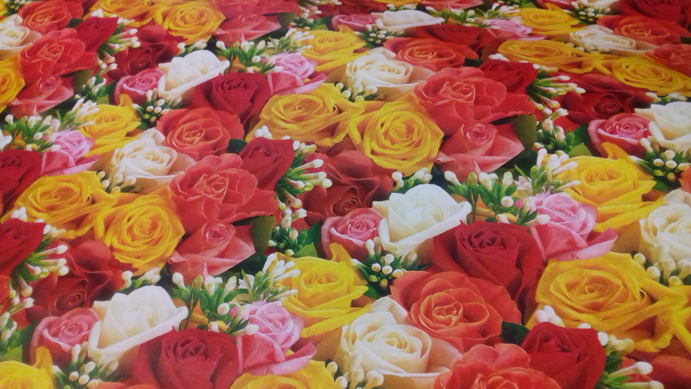 КП 1242 Бумага упаковочная "Желтые и красные розы" Размер 70*100 см.Матовая
