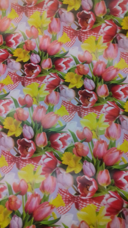 КП 1267 Бумага упаковочная "Тюльпаны с красн.бантом в клетку" Размер 70*100 см.