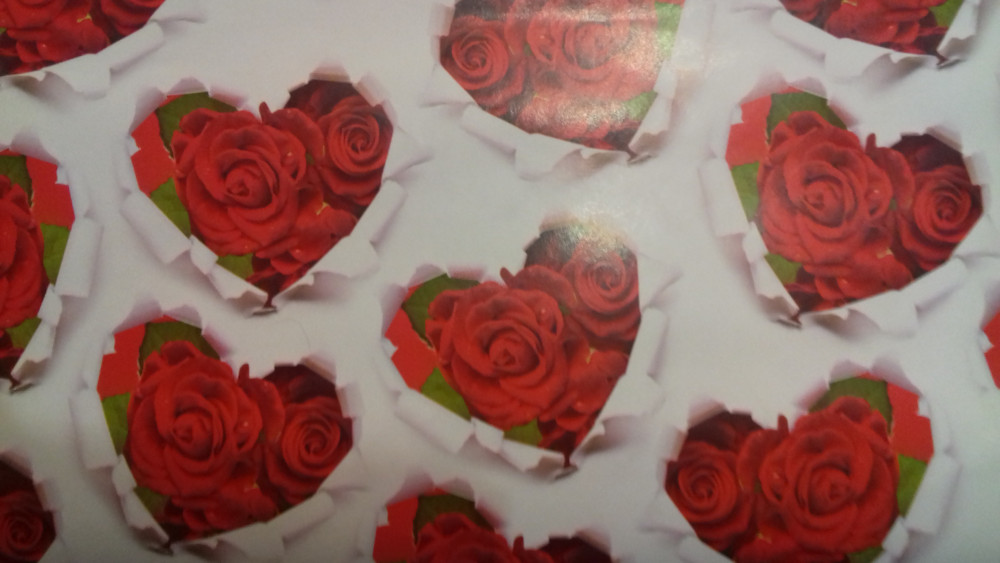 КП 1274 Бумага упаковочная "Красные розы в сердце" Размер 70*100 см.Матовая