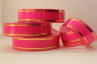А 340 Лента "Ярко розовая с золотистой полоской" для упаковки. Ширина 3 см.