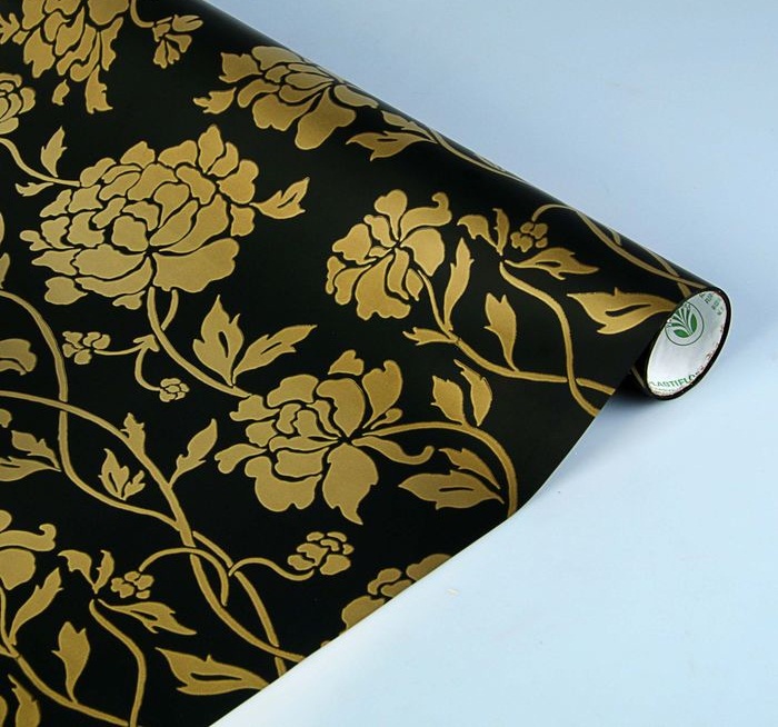 1408063 Упаковочная пленка Премиум "Черно-золотые пионы" Ширина 50 см.
