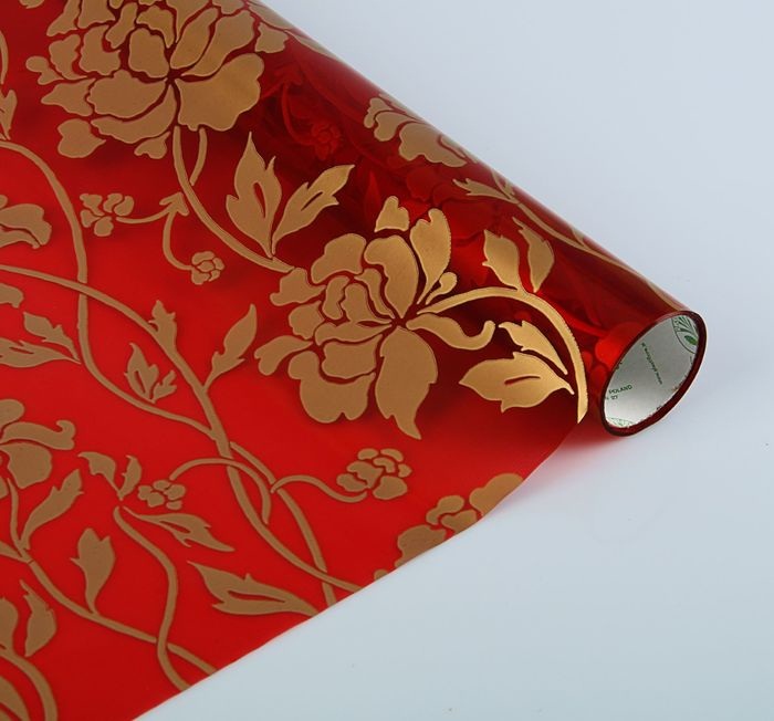 1932804 Упаковочная пленка Премиум "Красно-золотые пионы" Ширина 50 см.