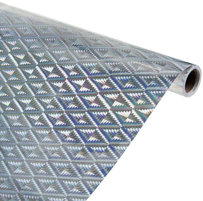 1075463 Серебро голографическая самоклеящаяся пленка. Ширина 45 см. Плотность 8 мкр