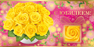06.566.00 Конверт для денег "С Юбилеем! Желтые розы" Тиснение золотом